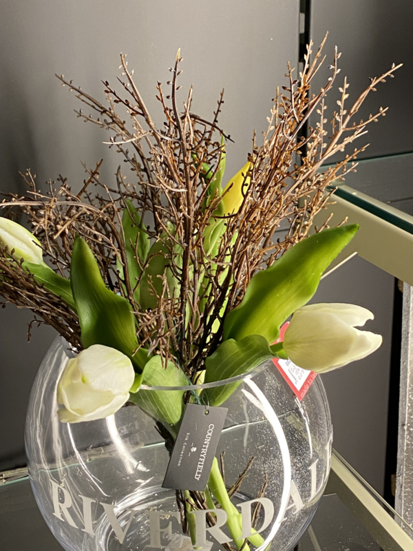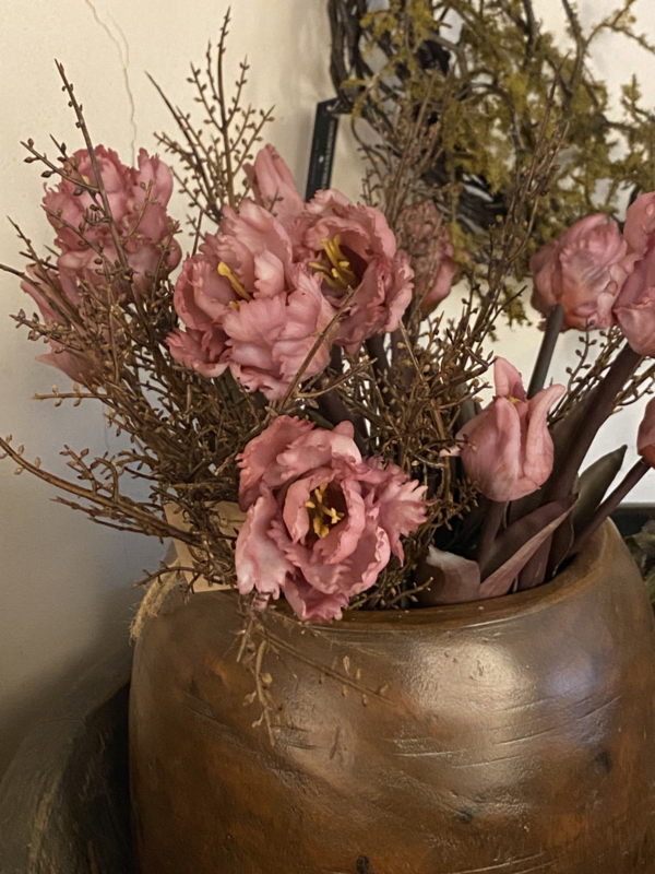 Stoer en Sober alleen in een vaasje of als bosje in een schaal.